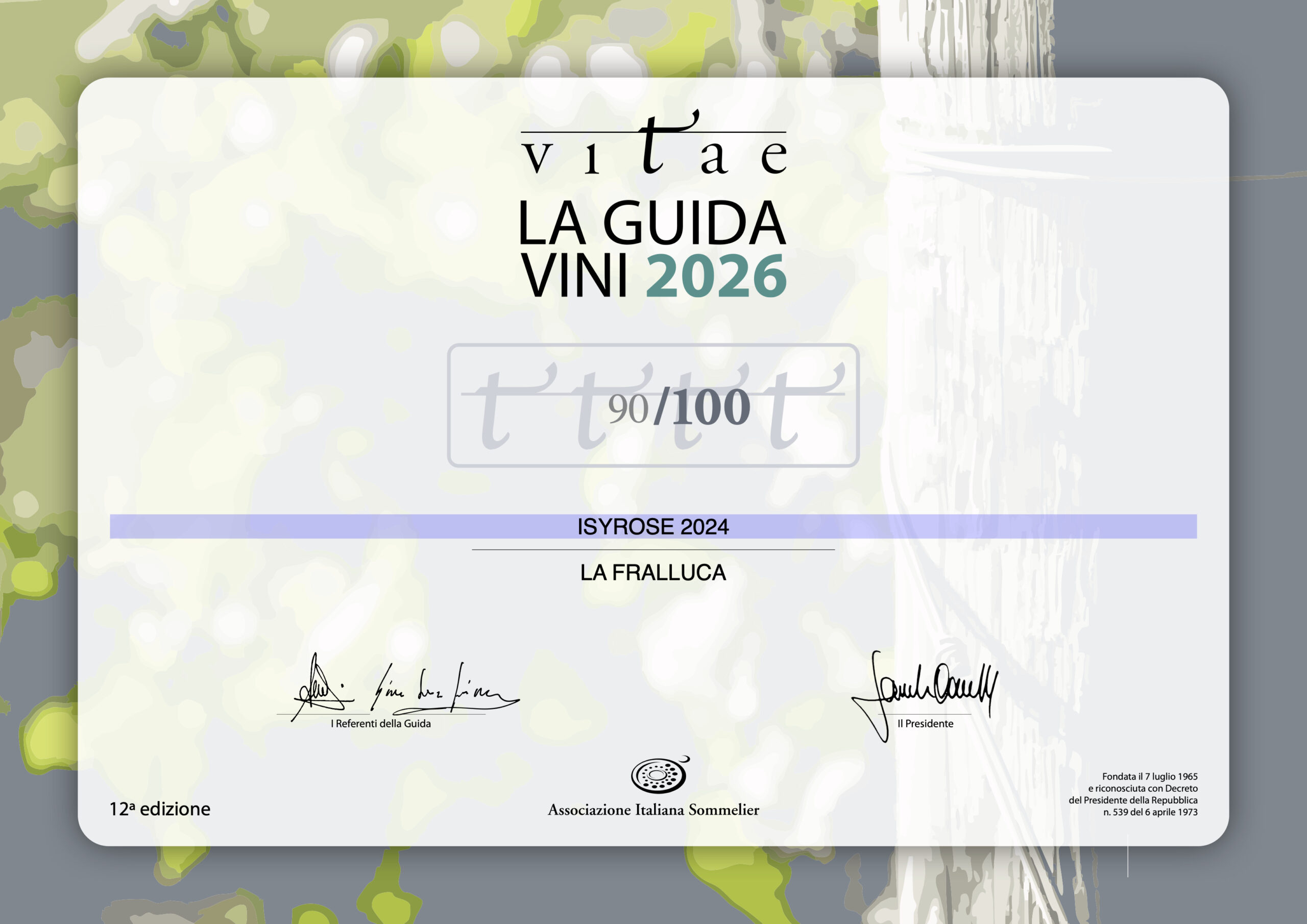 Il nostro rosato da vinificazione in bianco di Syrah ha ottenuto 90/100 dalla guida dell'Associazione Italiana Sommelier della Toscana